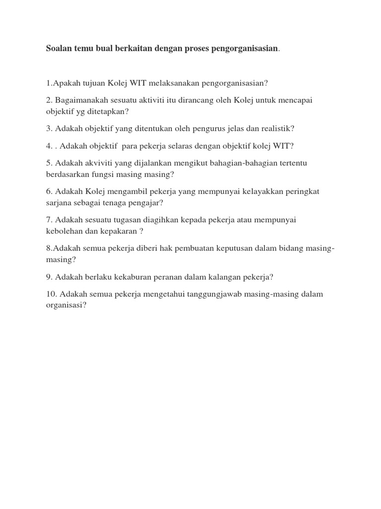 Contoh Soalan Temubual Kajian Tentang Masyarakat Tersoal O